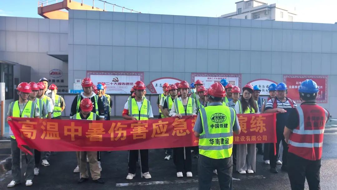 廣花城際總承包部在二工區(qū)(中鐵十五局管段)開展防中暑應(yīng)急演練